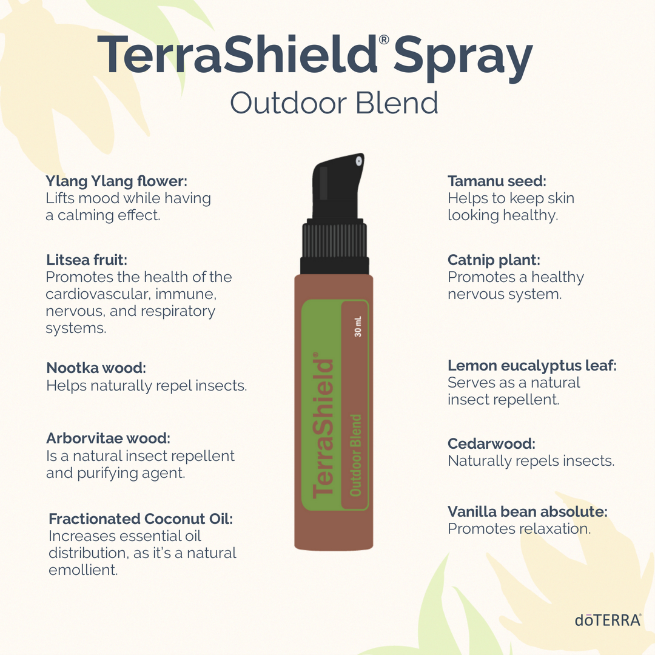 Recently when on a trip to Northern California, I wish I had remembered my TerraShield. It is the perfect travel size. My ankles and legs got so bitten up! On another note, although I used Lavender and Tea Tree to help with the itching, my mom suggested making a paste with Baking Soda and water. Rubbing that on the bites also gave me great relief.